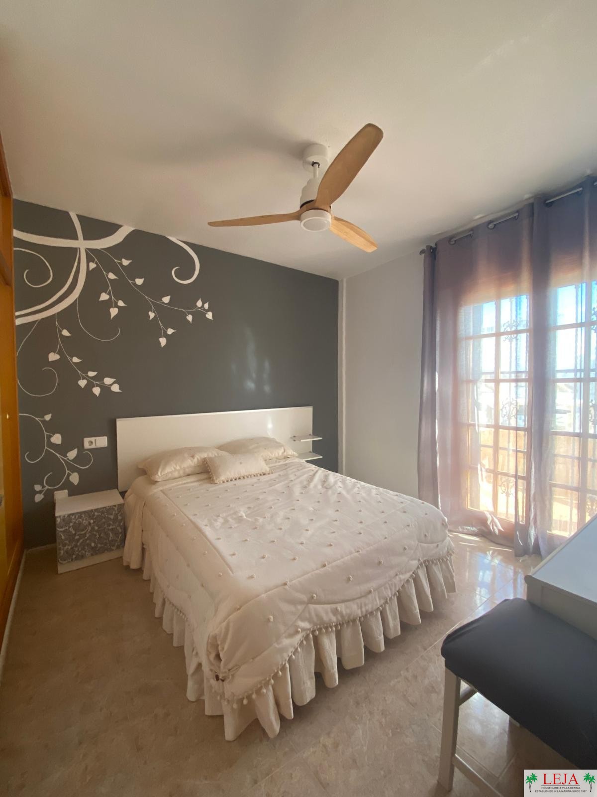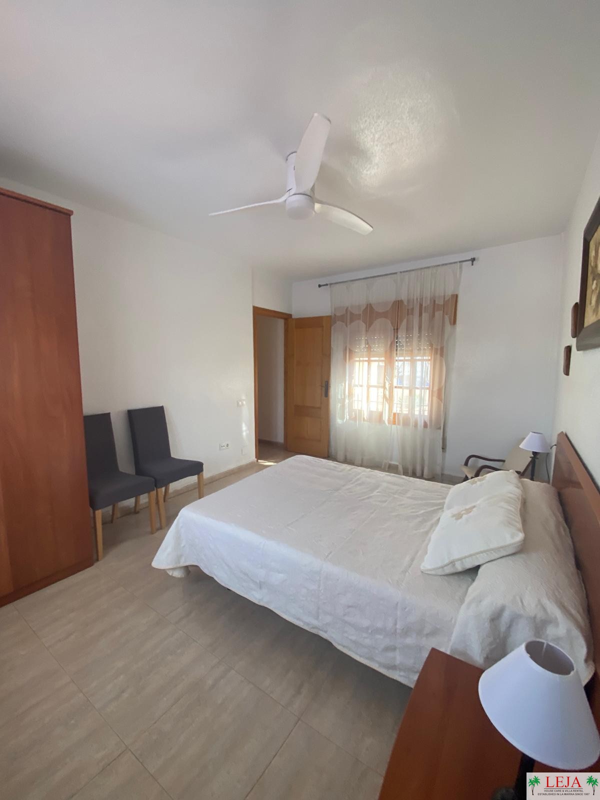 BEDROOM 2: Double bed, ceiling fan, double wardrobe