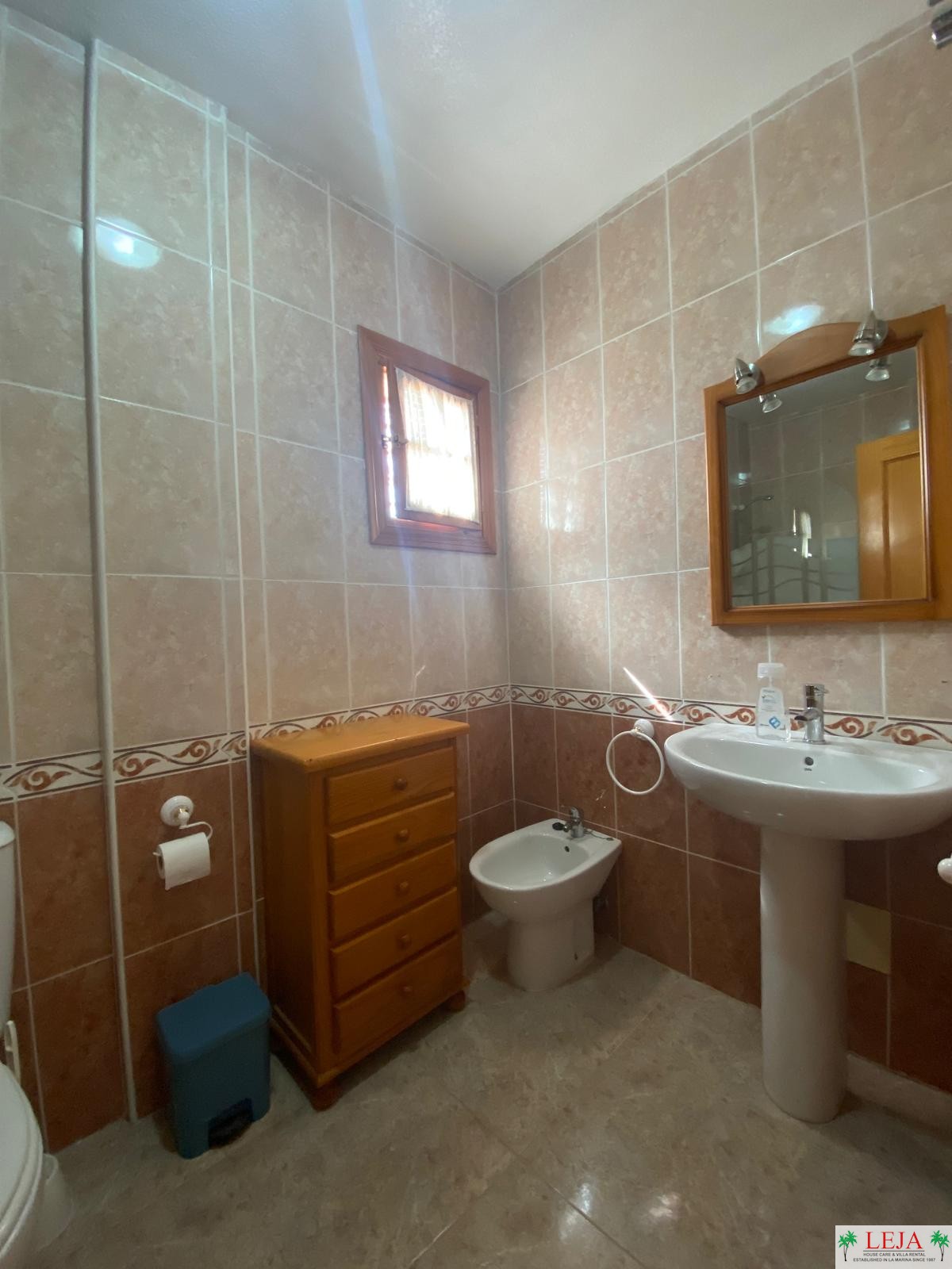 BATHROOM: Basin, mirror light, bidet, WC, bath with over shower
