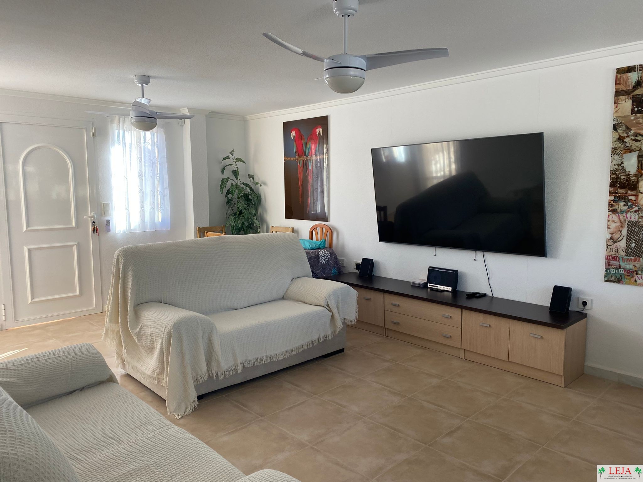 LIVING ROOM: 2 sofas, air con, dining table and chairs, 75” smart TV, Gas heater, ceiling fans